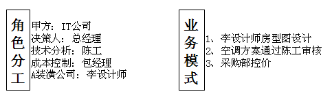 根據(jù)客戶的需求去設(shè)計方案,是我們在方案設(shè)計最基本的要求。客戶對我們提出初步方案的要求,某種意義上說是為了考察我們是否具備完成項目的能力。竭盡全力完成我們的解決方案,并且通過不斷的溝通,完善我們的設(shè)計方案,使方案滿足客戶的要求。這可以幫助我們在客戶面前顯示我方在方案設(shè)計方面的優(yōu)勢,展現(xiàn)我們的工作風格和盡心盡力為客戶服務(wù)的工作態(tài)度,是我們可以做的能夠保障我們的銷售流程的事情之一。 以下案例中就是如此,主人公是如何從做出一份完美的方案贏得客戶心? 【案例背景】 JK公司成立已有15載,是專業(yè)做HL空調(diào)的暖通公司,公司最初起步是從維修類開始的,所以我們公司對于各類品牌空調(diào)的技術(shù)也是相當了解的,而且我們有一支強大的售后部門。 去年,我偶然了解到一個IT公司新租的一棟大樓需要裝新空調(diào)。甲方當時看中的是品牌、技術(shù),和售后。所以他們比較傾向LN的技術(shù),進口品牌,和絕對的售后服務(wù)問題。而他們的采購部門也是按照上級領(lǐng)導指示的意思,再尋找合作的供應(yīng)商。而我也是很幸運的被他們的采購部經(jīng)理包經(jīng)理聯(lián)系到了。甲方也是一直有合作的空調(diào)公司,考慮到這家公司的售后跟不上,所以就想換家公司看看,因此就找到我方公司。 【組織架構(gòu)】 采購部經(jīng)理:包經(jīng)理 技術(shù)工程師:陳工 A裝潢公司:李設(shè)計師
