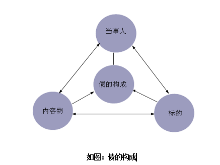 ①、當事人:指債的主題即債的法律關系的當事人,其中享有權利的一方為債權人,負有義務的一方為債務人,法律關系的雙方當事人是特定的自然人或者法人,債權人債權的實現有賴于債務人的行為,兩者缺少一方則不構成債。