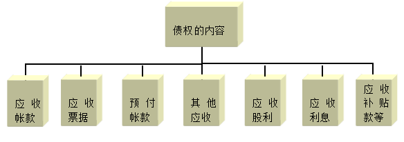 從財會的角度看,債權是指單位未來收取款項的權利,其主要包括以下內容。如圖: