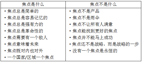 聚焦原理,找準(zhǔn)焦點(diǎn) 人們常常以“水滴石穿”來(lái)形容有志者事竟成的堅(jiān)定毅力,但是卻往往忽略了,所謂的“水滴石穿”,是水滴的滴落點(diǎn)在同一處,這是一種專注,更是一種聚焦。假如水滴的滴落點(diǎn)不在同一處,即便是源源不斷、經(jīng)年累月,也無(wú)法滴穿大石頭。這就是聚焦的力量。 激光可以用來(lái)切割鋼鐵。激光切割的原理是將激光束聚焦成直徑為頭發(fā)絲大小的小點(diǎn),蒸發(fā)焦點(diǎn)處的材料,形成切縫。就能量強(qiáng)度對(duì)比,激光是無(wú)法和太陽(yáng)相比的,之所以太陽(yáng)光無(wú)法切割鋼鐵而激光能夠切割鋼鐵,道理只有一個(gè),那就是太陽(yáng)光是發(fā)散的,而激光是聚焦的,這就是聚焦與否的區(qū)別。 ![]() 圖7-1 聚焦與否的區(qū)別 好的企業(yè)一定要聚焦,獲得核心優(yōu)勢(shì)。事事通不如一事專。企業(yè)可以將有限的資源聚焦于某一個(gè)局部,這樣反而能夠產(chǎn)生強(qiáng)大的能量,給企業(yè)帶來(lái)意想不到的效果。只有找準(zhǔn)焦點(diǎn),才能把力量充分的發(fā)揮出來(lái)。焦點(diǎn),也就是突破點(diǎn)。對(duì)企業(yè)來(lái)說(shuō),需要不斷的尋找、更新企業(yè)發(fā)展的突破點(diǎn)。 向深處,不要向?qū)捥幇l(fā)展: ![]() 圖7-2 向深處發(fā)展 釘子、錐子、鉆頭,所有突破阻力的工具都是尖的,而所有用來(lái)增加阻力的工具都是寬的,比如降落傘。這是生活中的常識(shí)。 運(yùn)營(yíng)企業(yè)也是一個(gè)道理。 向?qū)捥幇l(fā)展只會(huì)增加競(jìng)爭(zhēng)對(duì)手。進(jìn)入一個(gè)領(lǐng)域,就增加了幾個(gè)甚至幾十個(gè)競(jìng)爭(zhēng)對(duì)手。再進(jìn)入第二個(gè)領(lǐng)域,又增加了幾個(gè)幾十個(gè)競(jìng)爭(zhēng)對(duì)手。進(jìn)入的領(lǐng)域越多,競(jìng)爭(zhēng)對(duì)手就越多。到最后,被競(jìng)爭(zhēng)對(duì)手團(tuán)團(tuán)包圍,根本數(shù)不清有多少的競(jìng)爭(zhēng)對(duì)手。而向深處發(fā)展得到的是領(lǐng)先,得到的是合作,是合作伙伴。做的越好,就越和別人互補(bǔ),別人就越愿意和你合作。合作而不是競(jìng)爭(zhēng),得道多助,失道寡助,這個(gè)“道”就是聚焦。 向深處發(fā)展還能引起“連鎖反應(yīng)”和“杠桿效應(yīng)”。當(dāng)在一個(gè)領(lǐng)域發(fā)展到深處,擁有一種特殊的核心能力之后,可以以這種核心能力為杠桿,撬動(dòng)更大的市場(chǎng)。 騰訊多年耕耘即時(shí)通訊領(lǐng)域,QQ是中國(guó)用戶最多的即時(shí)通訊工具,憑借QQ的巨大用戶量,騰訊迅速的在游戲、門戶、社區(qū)、移動(dòng)增值等領(lǐng)域發(fā)展壯大,這就是聚焦的“杠桿效應(yīng)”。 你無(wú)法讓星星聚焦,卻可以讓企業(yè)聚焦——王老吉的轉(zhuǎn)型 2003年之前,加多寶集團(tuán)的王老吉只是一個(gè)年銷售穩(wěn)定在億元上下的區(qū)域品牌,在廣東、浙南地區(qū)銷售不錯(cuò)。王老吉定位是涼茶還是飲料,生產(chǎn)企業(yè)不清楚,消費(fèi)者也不清楚。 王老吉當(dāng)年的廣告“健康家庭,永遠(yuǎn)相伴”——也說(shuō)不清王老吉的特點(diǎn)。調(diào)查發(fā)現(xiàn),喝王老吉的消費(fèi)者紛紛推出一點(diǎn),就是喝王老吉不上火。 于是,王老吉改變定位,新的定位是為不上火的飲料。幾千年中醫(yī)的“上火”的概念在全國(guó)各地深入人心,新的定位使王老吉突破了涼茶概念,只要做好宣傳概念的轉(zhuǎn)移,只要有中國(guó)人的地方,就可以有王老吉。 確定新定位之后就是聚焦定位。 王老吉選擇了一個(gè)特殊的渠道——餐飲,選擇湘菜和川菜館、火鍋店作為“王老吉誠(chéng)意合作店”,投入資金與他們共同進(jìn)行促銷活動(dòng),凡是就餐的地方都要擺上“王老吉”。 王老吉為餐飲渠道設(shè)計(jì)布置了大量的終端物料,如設(shè)計(jì)制作了電子顯示屏、燈籠 等餐飲場(chǎng)所樂(lè)于接受的實(shí)用物品,免費(fèi)贈(zèng)送。事實(shí)證明,餐飲這條渠道非常有效,“怕上火,喝王老吉”迅速被餐飲消費(fèi)人群所接受。隨后,“王老吉”實(shí)現(xiàn)了從單一渠道到渠道混合的逐步滲透,并迅速鋪向了整個(gè)市場(chǎng)。 在鋪天蓋地的廣告中,王老吉一遍又一遍的重復(fù)著“怕上火,喝王老吉”。準(zhǔn)確的表達(dá),足量的投放,迅速在全國(guó)上下卷起一股喝王老吉的風(fēng)潮。2003年,王老吉的銷售額從2002年的1億多元猛增至6億元,2004年全年銷量突破10億元, 2008年全年銷量突破100億元。 15把長(zhǎng)期聚焦的鑰匙 表7-1 15把長(zhǎng)期聚焦的鑰匙 ![]() 焦點(diǎn)總是簡(jiǎn)單的。簡(jiǎn)單、容易理解,企業(yè)上下才能夠認(rèn)同。復(fù)雜,就不能聚焦。復(fù)雜的事情,要么難以理解,要么各人理解的都不同,東西南北中,哪個(gè)方向都有,力使不到一起來(lái); 焦點(diǎn)總是容易記憶的。容易記憶,才能夠打入顧客的頭腦中去,對(duì)從外對(duì)內(nèi),對(duì)公司形成一個(gè)拉力,拉動(dòng)公司的市場(chǎng)份額; 焦點(diǎn)總是強(qiáng)有力的。焦點(diǎn)是錐子而不是棉花糖。錐子,力用在一處,集中力量,破除阻礙,得到突破。用再大的力,也不能把棉花糖擠進(jìn)木頭中去; 焦點(diǎn)總是革命性的。革命性的力量是最強(qiáng)有力的力量,這種力量能夠把市場(chǎng)撕開(kāi)