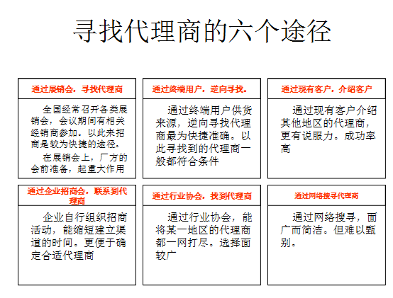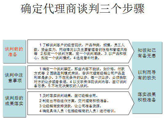 工業品的營銷渠道的常見模式為分四大類型:大客戶渠道,項目型渠道,代理商渠道和直營型渠道。(見圖表)項目型渠道的介紹已在前面重點闡述,在這里就不做介紹。![]() 針對這四種類型,工業品企業來如何設計自己的營銷渠道模塊呢? 5.1 企業的直營渠道設計模型 工業品生產企業在直營管理中存在的問題點還很多,如銷售人員綜合素質參差不齊,人員流動性大,運作流程的缺失,售后服務的不完善等等。在這里就不一一加以闡述。我們重點分析如何建立起企業的直營系統呢?主要有五大步驟: 第一、建立客戶信息資料庫。 一般工業品企業客戶市場信息來源過于三個方面:一是銷售人員信息收集。二是公眾信息的匯總。三行業內信息的采集。針對市場競爭白熱化以及同質化嚴重的市場,這幾個方便的信息來源明顯的不夠的。企業競爭中占據主導地位,往往在于領先小步。這微弱的領先優勢,往往在信息第一時間內獲得。 第二、組建銷售團隊。 銷售團隊的組建關鍵要素在于“人”。中國企業現有銷售隊伍組織結構較多見的是區域銷售結構和產品銷售結構。大中型企業由于銷售區域較大,產品種類較多,會采用兩種結合的組織結構。有一定規模的企業無論是采取代理,還是終端銷售,首先都會分區域管理,設置區域總代理或設立區域辦事處。這種結構形式便于管理,各區域設總負責人,管理效率比較高。但有一個較突出的問題,在區域劃分和區域之間的協調上處理得不是很好,就會引起一些糾紛,影響銷售,影響銷售隊伍的團結,導致削弱整體戰斗力。 5.2 大客戶的渠道設計模型 大客戶渠道的特點: 第一、穩定性強。企業的大客戶往往是企業穩固長久的合作伙伴。彼此的信任以及利益的共同體,使得生產企業與大客戶之間建立起了戰略合作伙伴關系。 第二、銷量的比重大。大客戶的銷售量往往占據企業50%以上的比重。 第三、大客戶的市場運作成本低。因大客戶生產需求的特點,對產品規格,質量要求,發貨周期都有基本的穩定。以便于企業合理安排生產計劃,控制成本。 但大客戶渠道也存在著以下不足: 第一、大客戶的需求量受行業外部環境以及自身經營狀況的影響。企業難以掌控和把握。 第二、企業對大客戶的依賴性,往往會導致應收賬款的發生。 第三、對大客戶產品的供貨價格,往往會依據市場行情的波動而變化。價格因素往往會成為企業與大客戶發生爭執的焦點。 針對大客戶的特點在渠道設計上,可遵循以下三點原則: 第一、依據行業建立起自己產品的客戶群。 工業品的適用面往往是比較廣泛的,適用各個不同的行業。比如不銹鋼管,可適用于石化,食品,核電等不同行業。在大客戶拓展中,除了產品的價格,品質,供貨周期等因素之外,樣板客戶的影響力也起著重要的作用。依據某個行業建立起的優勢,會在某個范圍之內,建立起產品的品牌優勢。充分利用資源,拓展大客戶數量。 客戶的開發,一個關鍵環節是“借勢”。 孫子兵法曰:“善戰者,求之于勢,不責于人。故能擇人而任勢”正所謂“無勢者造勢,無力者借勢,有勢者用勢”。大客戶的行業開發,首先得給自己造勢;在價格,品質,或者服務等某一個方面顯示出其他同類產品無可比擬和超越的優勢;在行業中形成共識。這就是造勢。造勢的手段有媒體的宣傳,客戶的口碑,有影響事件的傳播等。將勢造得越大,對產品渠道的拓展推動力就越大。因此在行業內建立其大客戶渠道一般有三個步驟:一、是建立樣板客戶,擴大影響力。二、擴展客戶群體,建立起初級的銷售網絡。三、是對客戶進行篩選,選擇一批優勢客戶。組成穩固的銷售網絡體系。 在行業內建立起大客戶銷售渠道的關鍵要素是:服務,信譽和價格。企業把握住這三點要素,就能在某一行業內占據優勢。 第二、依據地區劃分,來建立自己產品的大客戶群。 在某一地區范圍之內,建立起自己密集的大客戶群。其利用是在該地區形成的社會關系優勢。利用企業或銷售人員在某一地區的公共社會關系或威望,發展出一批大客戶群。社會共同關系的運用,必須建立在產品價格,質量,供貨周期等客觀因素都于其他競爭對手在同一個水平線上,方能建立起穩固的大客戶渠道。 帶地區范圍內,建立密集的大客戶群;所能依據的資源主要有:一、政府職能部門的支持。比如質量監督局對生產安全性能有直接監控的權利。如將自己公司產品作為質量監督局的推薦產品,就容易被有關企業所接納。二、在當地生產企業間建立起的良好的人脈關系。與各企業是老板是同鄉發小關系,在同等條件下,大多會選擇該公司的產品。三、利用當地的行業協會的能力推廣自己的產品。行業協會雖是自發的民間組織。但對當地的企業還是具備約束和影響力。利用行業協議的能力,推廣產品;易于被有關企業所接受。 第三、利用已有的客戶資源建立起產品的大客戶群。 一些企業在原有產品的基礎之上,退出新品類的產品。利用現有的銷售網絡建立起自己的大客戶銷售渠道。這種模式簡潔,快捷。能在較短的時間內,形成一定的銷售量。但確定也比較明顯。對老客戶的過度使用,會增加對這些客戶的依賴性。新產品質量的不穩定,或對原有產出產生沖減。增加風險。 利用現有渠道建立新產品的大客戶群,只能適度使用。在立足老客戶的基礎之上,不可停止對新客戶的開發。只有多管齊